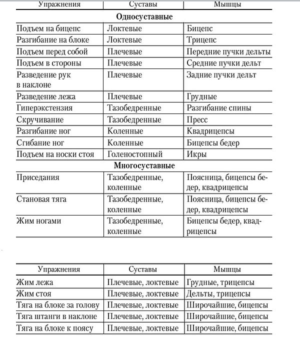 Разработка оптимальной схемы тренировки – дело непростое. Каждый человек имеет свои физиологические особенности, у всех разные возможности и потребности, поэтому указать самую лучшую схему тренировок одну для всех очень сложно. Но мы попробуем. Кроме того, немаловажную роль играет и психологический настрой. Поэтому схему чередования одно– и многосуставных упражнений следует рассматривать как элемент тонкой, а главное – индивидуальной настройки тренинга.